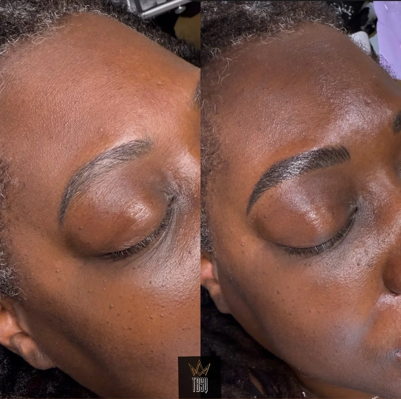 Bring your brows up to date! Nano Brows are the must-have brow trend of 2025. This advanced technique uses a machine to create ultra-fine, hair-like strokes for a natural, long-lasting look. Ideal for all skin types, nano brows offer a refined, low-maintenance solution for fuller, perfectly shaped brows.